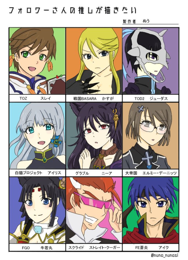 完成しました!リプして下さった皆様ありがとうございました!普段描かないキャラばかりだったので楽しかったです😊 #フォロワーさんの推しが描きたい