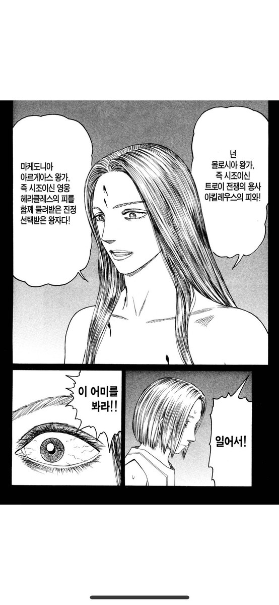 확실히 번역기로 돌려봐도 둘이 꽤 다른 느낌이군… 그니까 원어판 올림피아스 왕비는 아들한테 존댓말 쓰는 캐릭터인거지? ~~선택받은 왕자입니다.. 이 어미를 보세요! 이런 느낌이면 한국판으로는 이렇게…