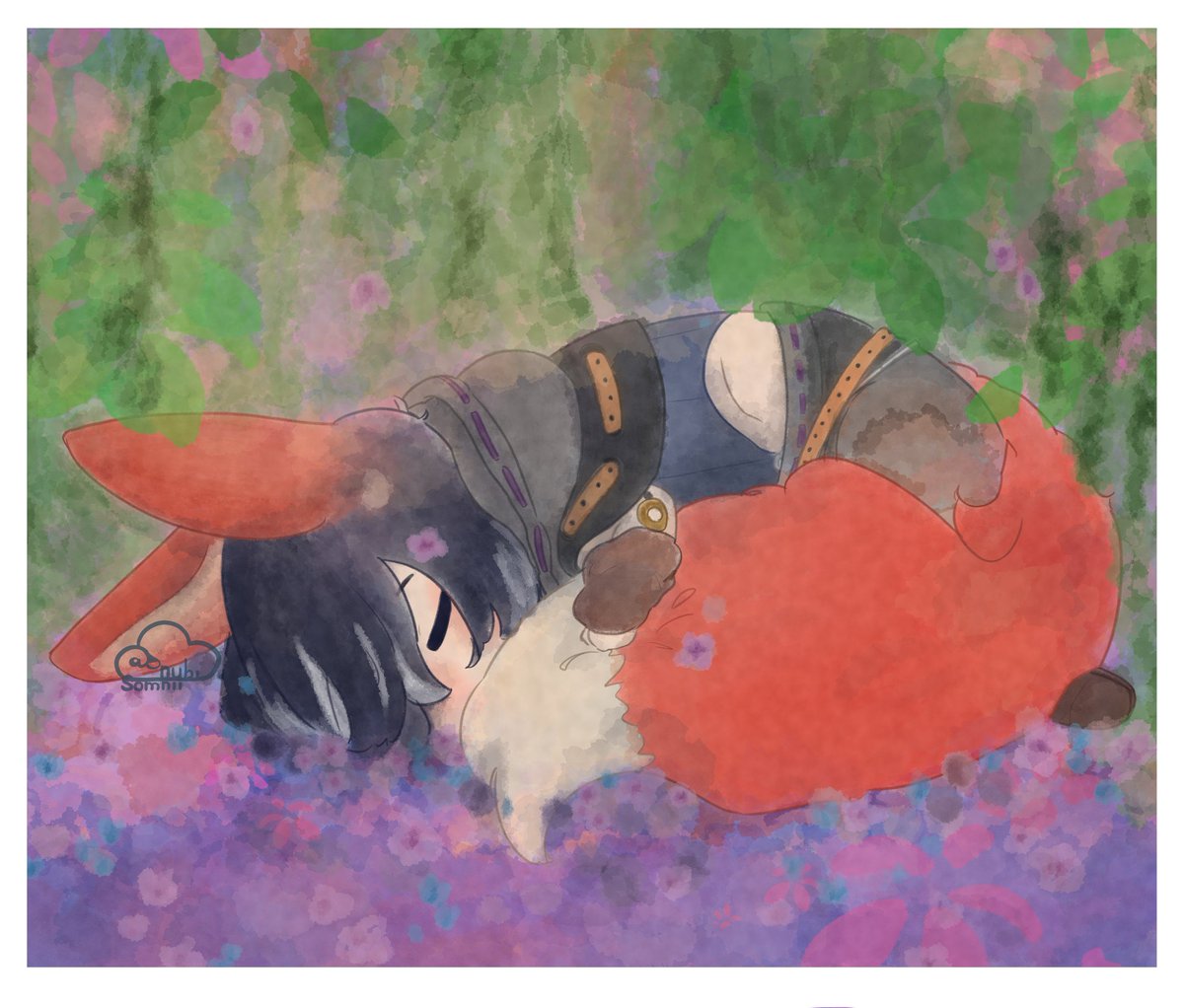 Shhh fox Belphie is sleeping 🤫💜🦊 AM BACK I'm finally able to draw again *ugly sobbing*🥺💜💜💜 #obeyme #obeymebelphegor #obeymefanart