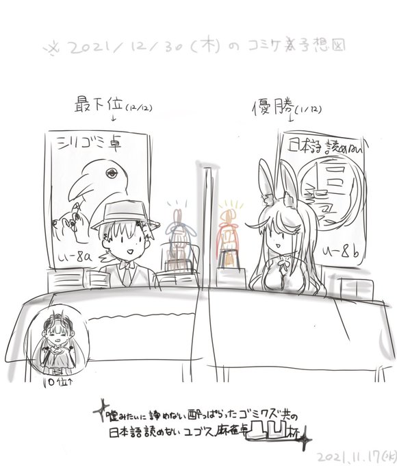 32 126 #嘘みたいに諦めない酔っぱらったゴミクズ共の日本語読めないユゴス麻雀卓凸凹杯 麻雀大会白熱してたしわちゃわちゃしてて楽しかった! ※画像はイメージ図らくがき 21/11/18 00:40