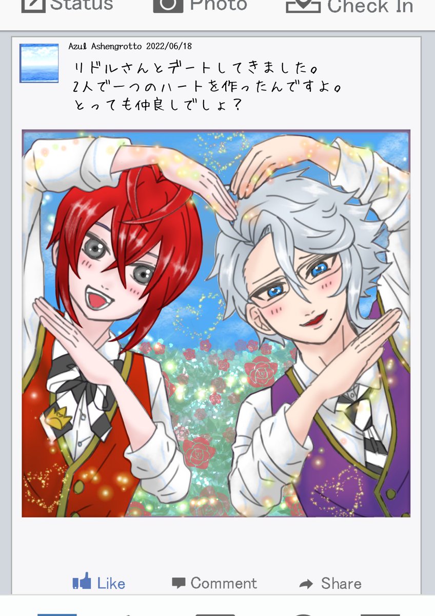 合作! #ツイステファンアート #keipepepeko カミヤと線画交換したー⸜(*ˊᗜˋ*)⸝ わたしの推しはリドアズ カミヤはレオジャミ 線画交換めっちゃ楽しかった❤️❤️❤️ またやりたい〜⸜(*ˊᗜˋ*)⸝ やりたい人このゆびとーまれ☝️