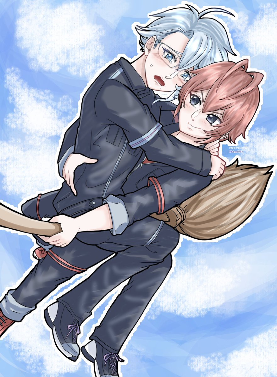 むぎちゃんとリドアズ線画交換してぬりっこしたー⸜(*ˊᗜˋ*)⸝ 憧れのむぎちゃんが線画交換してくれて、ちょーハッピー❤️ ホウキ2人乗り 線画ぬくぴ 塗りむぎちゃん SNS風 線画むぎちゃん 塗りぬくぴ #ツイステファンアート