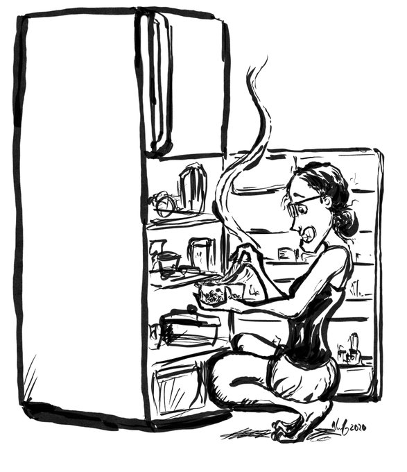 Inktober 11: “disgusting.” “Oh god, how long has that been there?” - #Inktober2020 #Inktober #digital #digitalartist #ink #art #drawing #disgusting #selfportrait #autobiocomics #refrigerator #cleaning