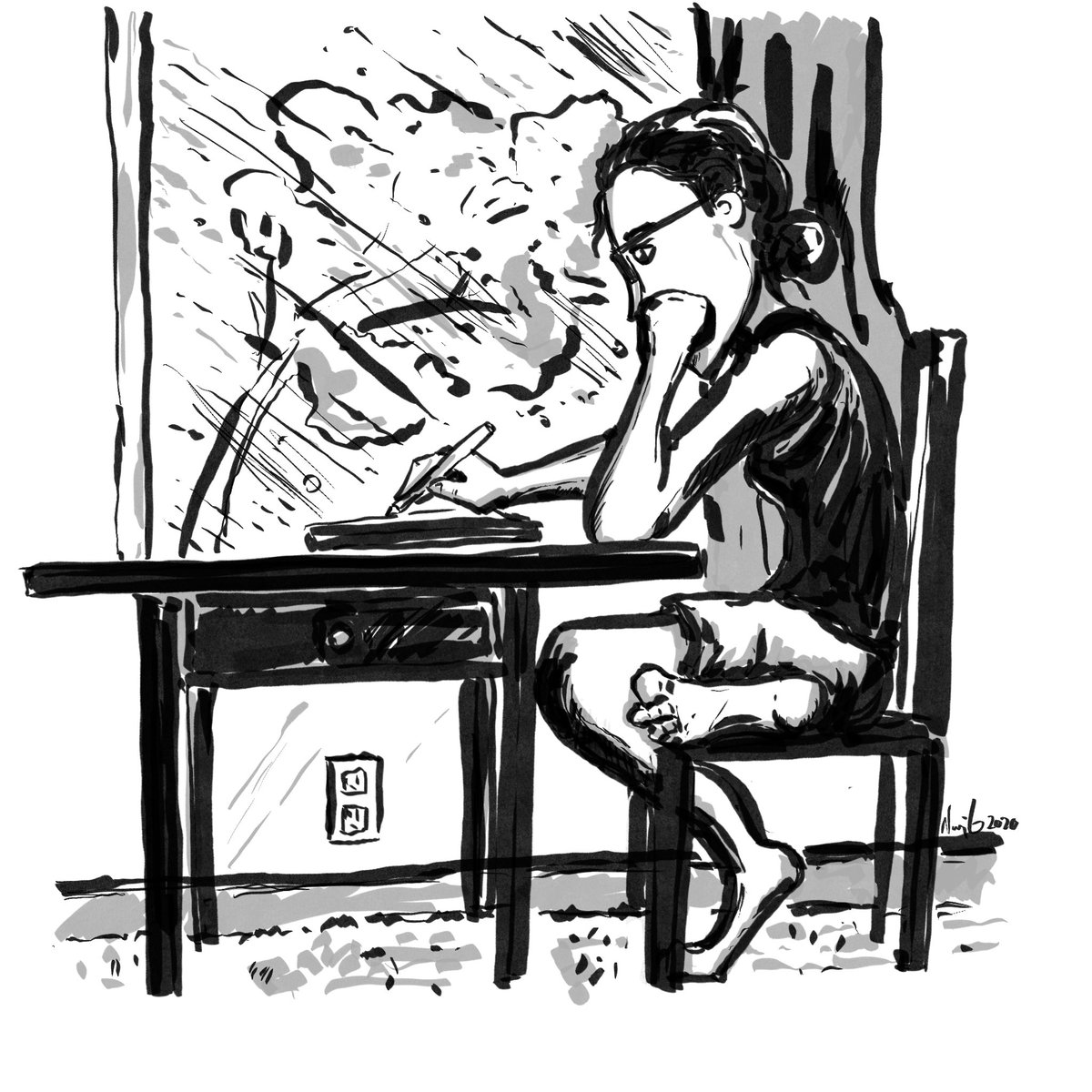 Inktober 17: “storm.” There are days where the rain reminds me why I said I’d never move back to #Oregon. And yet, here I am. - Made with @Procreate #Inktober2020 #Inktober #digital #digitalartist #ink #art #drawing #storm #rain #selfportrait #autobiocomics
