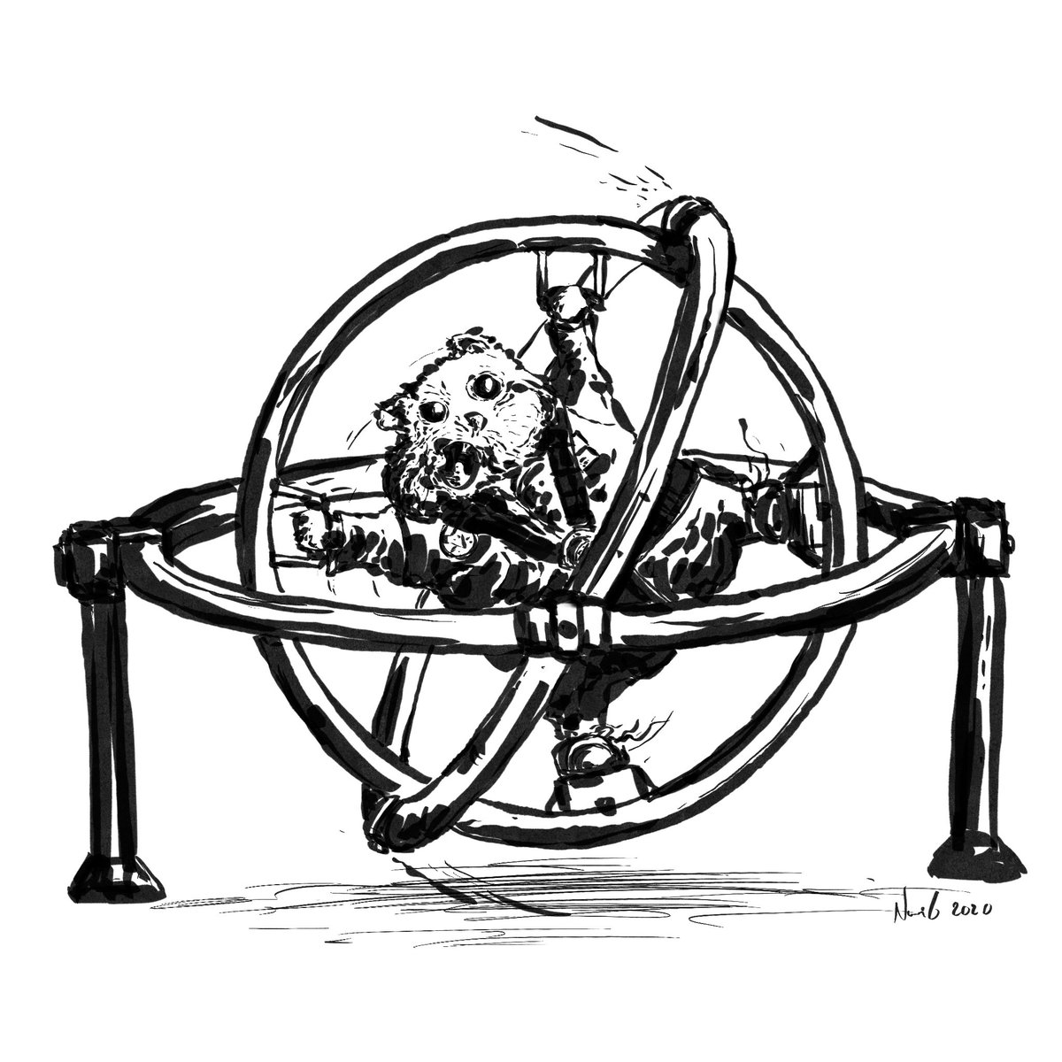 Inktober 19: “Dizzy.” Space Hamster 5 - “Training Day.” - Made with @procreate #Inktober2020 #Inktober #digital #digitalartist #ink #art #drawing #hamster #gyroscope #training