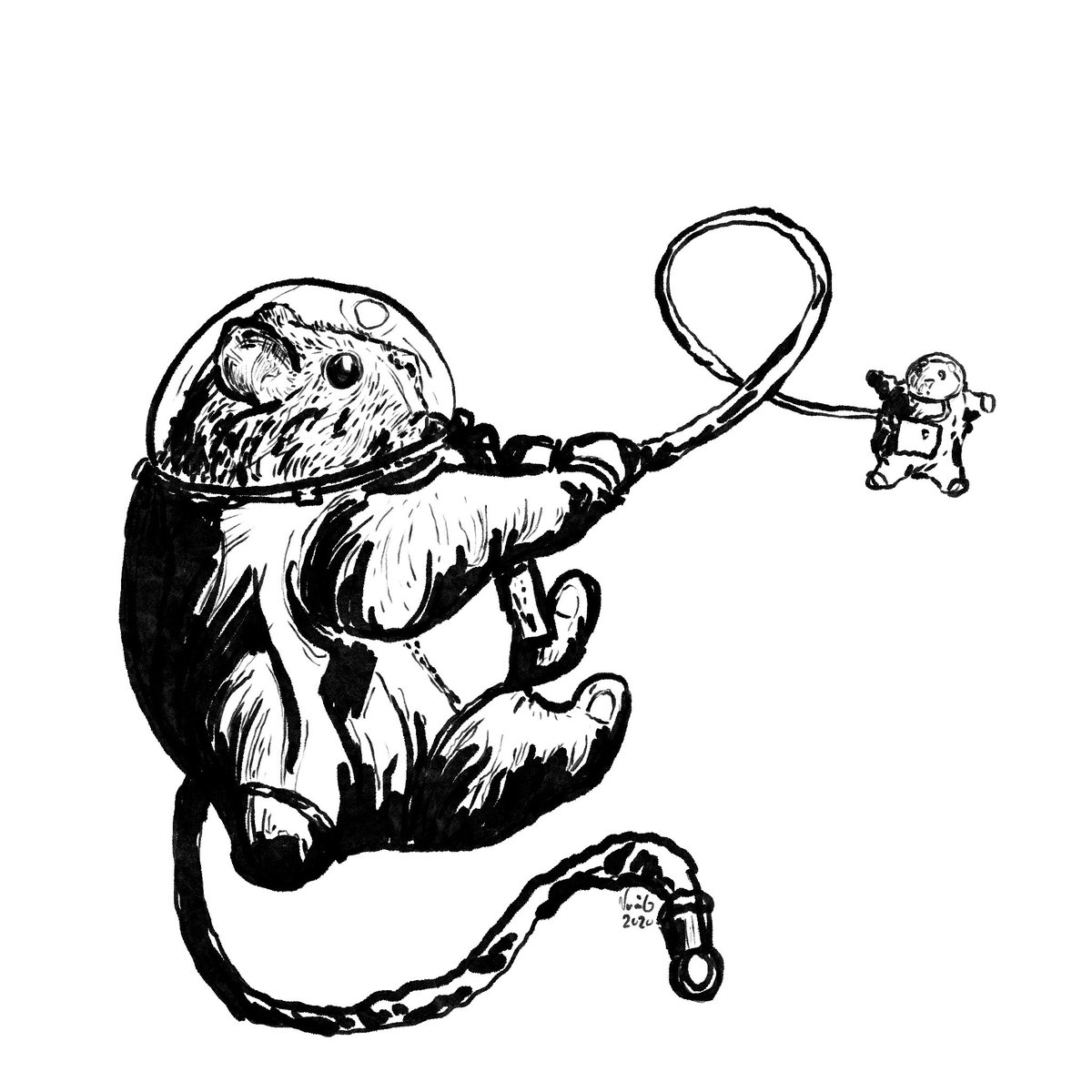 Inktober 6: Rodent. “See you later, space Hamster.” - #Inktober2020 #Inktober #ballpoint #ink #physicalmedia #art #drawing #space #hamster #spacesuit #spacehamster