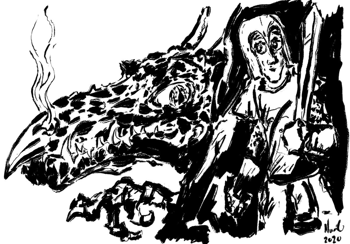 Inktober 26: “Hide” - when hunting dragons, sometimes the most prudent course is to hide. - Made with @procreate #Inktober2020 #Inktober #digital #digitalartist #ink #art #drawing #procreate #hide #dragon #knight