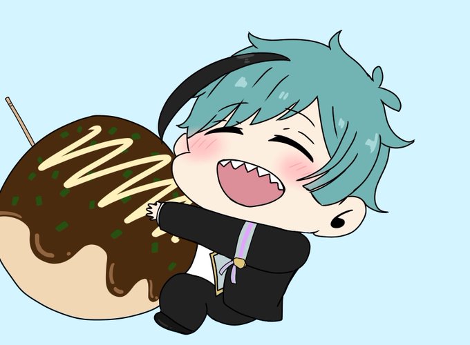 0 3 たこ焼き持ったミニキャラのフロイド #ツイステファンアート #フロイドイラスト #イラスト 23/06/09 22:59