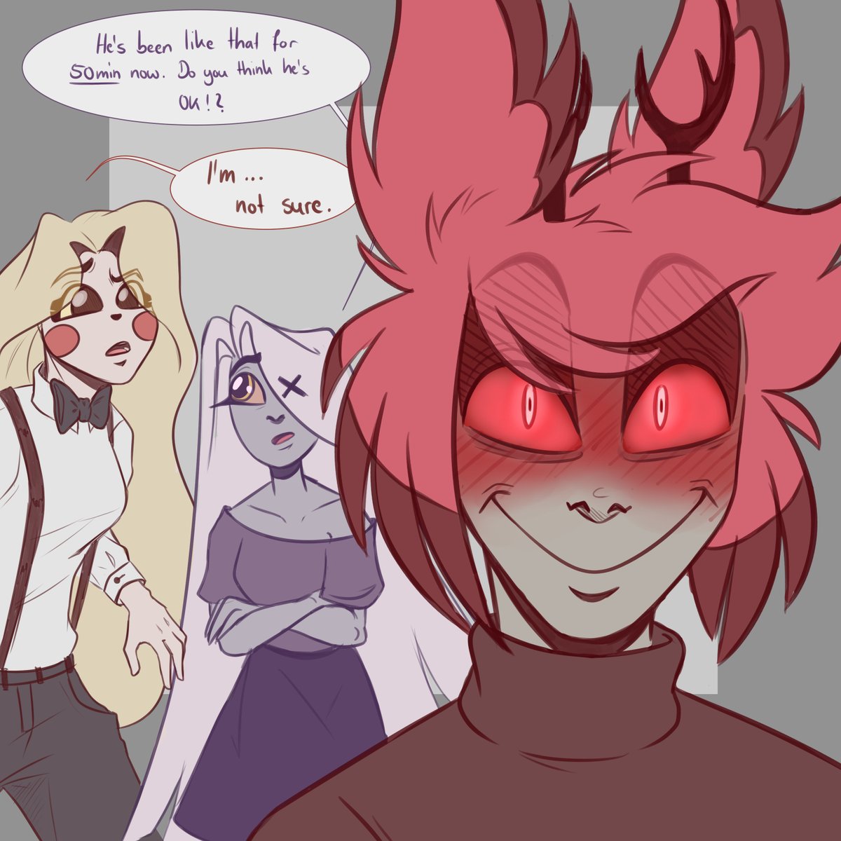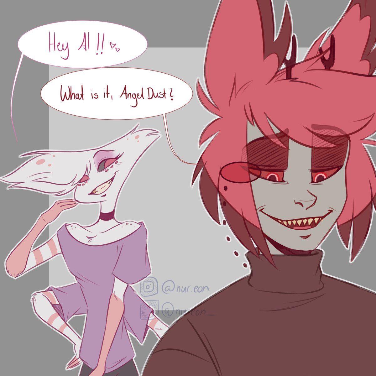 Forgot to post it here, but I redrew one of my first Radiodust mini comics a few weeks ago. #Radiodust #Alastor #Angeldust #HazbinHotelFanart