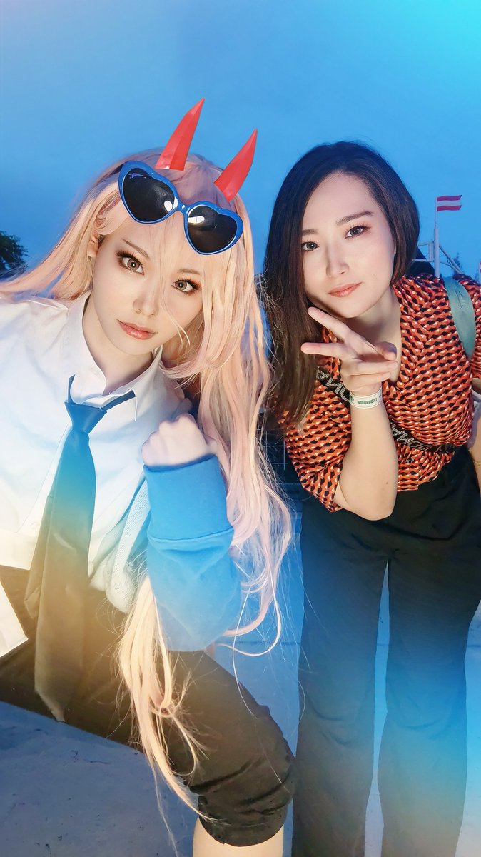 やっちとアカソラさんとの 最高にHappyなお写真💖🏖 我はチェーンソーマンのパワー #ラグコス2023 #ラグコス2023夏 #コスプレ #cosplayer