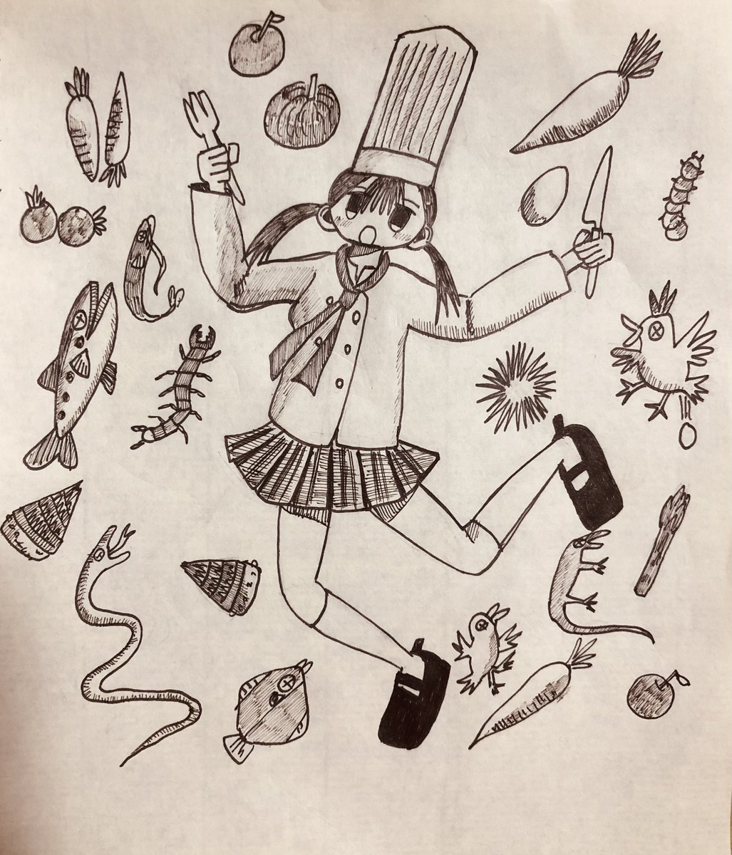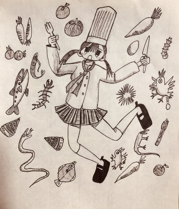 ラク☆ガキ ゲテモノ料理シェフ小泉ちゃん (殺人レベル) 「次は何作ろっかなぁー♪」 #クッキング #みんなで楽しむTwitter展覧会 #可愛いと思ったらRT #絵柄が好みって人にフォローされたい #冬の創作クラスタフォロー祭り #絵描きさんと繋がりたい #イラストレーターさんと繋がりたい
