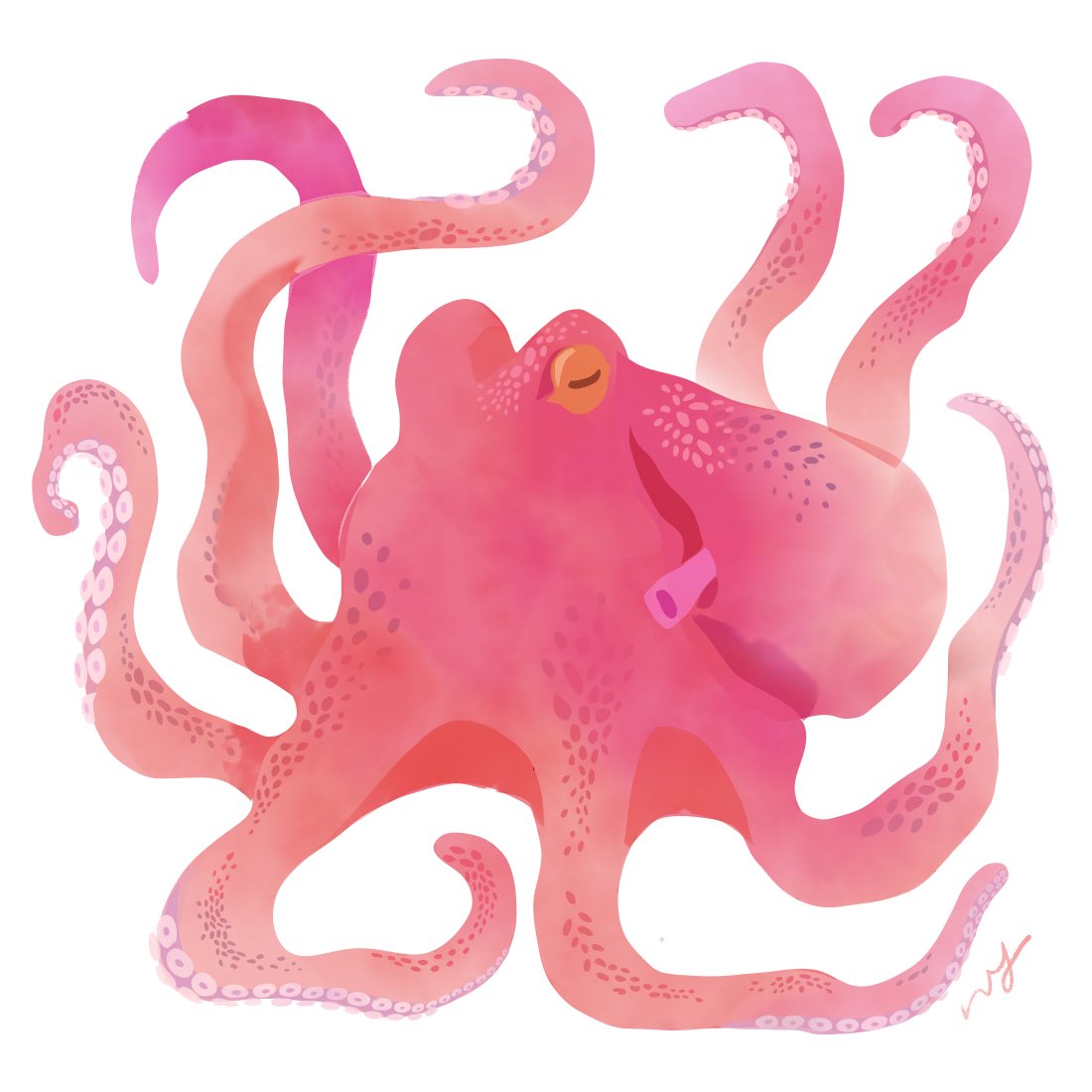 吸盤があまりにテキトーだったので直した。ちょっとマシかな。 #イラスト #タコ