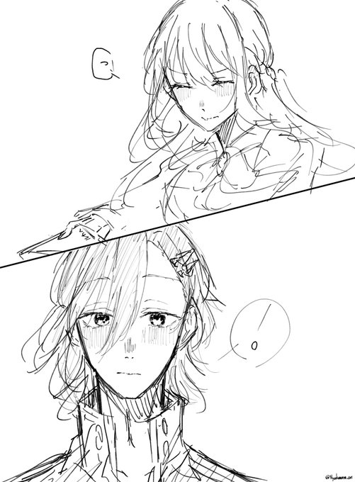 #イケシリ乙版深夜の真剣お絵描き文字書き60分一本勝負 #イケレボFA お題「手紙」お借りしました! 遅刻+若干の時間オーバー申し訳ありません!途中から何を描きたいか分からなくなりました。 アリスちゃんから手紙を貰うルカのルカアリです。