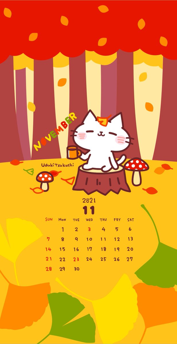 4 9 おはよー! 今日から11月だね。 カレンダーができたので、待受画面にどうぞ♪ 寒くなってきたから、暖かくして過ごしてね✨ #にゃーくん #カレンダーイラスト #11月 #カレンダー #待受 #壁紙配布 21/11/01 08:44