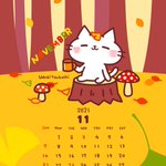 おはよー☀ 今日から11月だね! カレンダーができたから、待受画面にどうぞ🍂 過ごしやすい季節になってきたからお気に入りの服着てお散歩行こう♪ #にゃーくん #カレンダーイラスト #11月 #カレンダー #待受 #壁紙配布