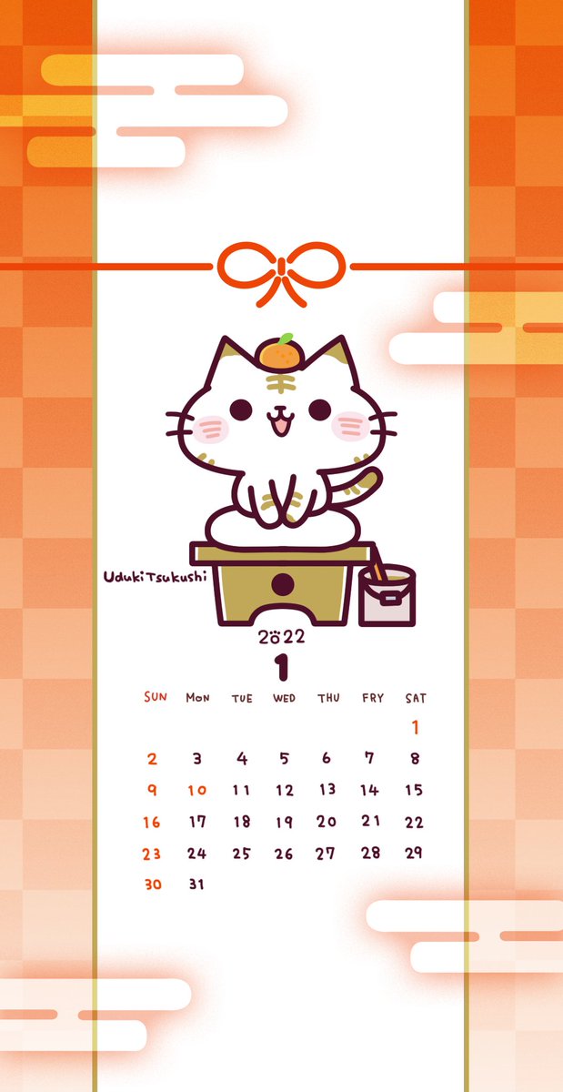 おはよー! 今日から2022年だね! 1月のカレンダーができたので、待受画面にどうぞ♪ みんなにとって今年がとっても幸せな1年になりますように✨ #にゃーくん #カレンダーイラスト #1月 #カレンダー #待受 #壁紙配布