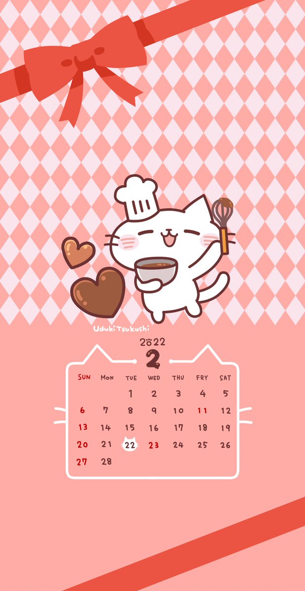 8 14 おはよー! 今日から2月だね! カレンダーができたので、待受画面にどうぞ♪ にゃーくんがおいしいチョコレート作ってあげるね💕 #にゃーくん #カレンダーイラスト #2月 #カレンダー #待受 #壁紙配布 22/02/01 08:42