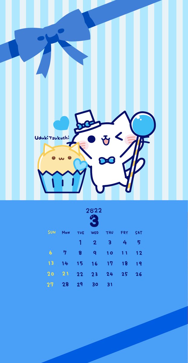 6 11 おはよー! 今日から3月だね! カレンダーができたので、待受画面にどうぞ♪ #にゃーくん #カレンダーイラスト #3月 #カレンダー #待受 #壁紙配布 22/03/01 09:03