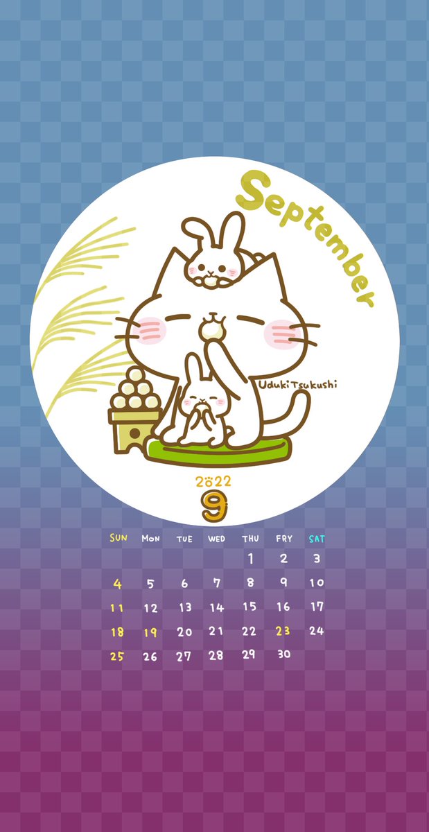 9 22 おはよー☀ 明日から9月だね! カレンダーができたから、待受画面とかに使ってね♪ うさぎさんと一緒にお団子食べたいな🌕 #にゃーくん #カレンダーイラスト #9月 #カレンダー #待受 #壁紙配布 22/08/31 08:37