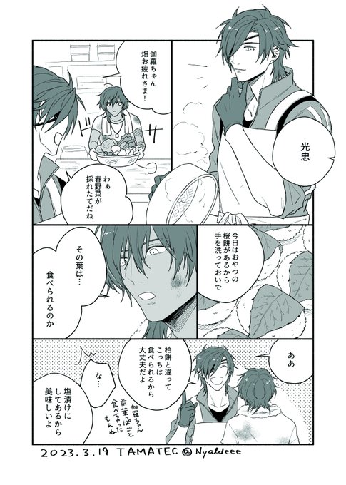 8/28閃華37の新刊サンプルです。なにもしらない顕現したての大倶利伽羅君に光忠さんが優しく手ほどきしてあげるお話です。※光忠さんの手袋下に独自解釈有り (1/2) pixiv.net/artworks/10073…