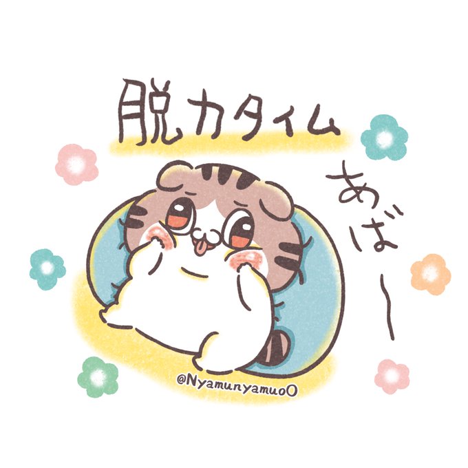 がんばった後は ダラーっと脱力 ꜀( ꜆-ࡇ-)꜆ #にゃむぽよ #創作 #ゆるイラスト #みんなで楽しむTwitter展覧会