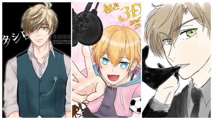 #今月描いた絵を晒そう この3つの他に、カタオリネタバレ絵と、フォロワさんの線画に色を塗らせて頂きました 10月はもうちょい頑張るわ…