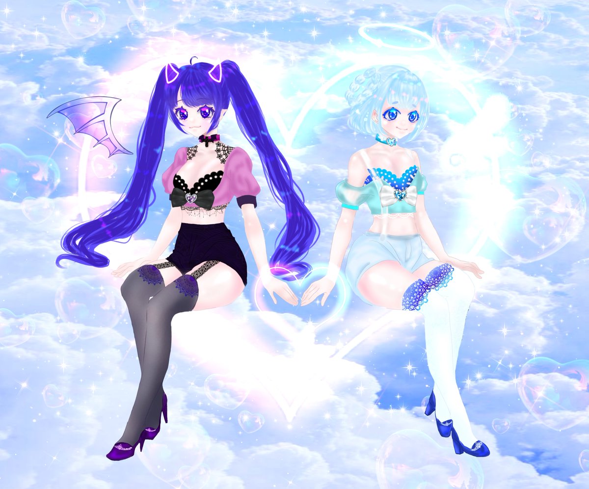 イラスト完成しましたああ!! 悪魔ver💜天使ver💙 可愛くかけましたᐠ( ˃ ᵕ ˂ )ྀིᐟ💜 #イラスト #イラスト好きさんと繋がりたい #フォロバ #うちの子描いてみませんかキャンペーン #初リプ・初絡み大歓迎