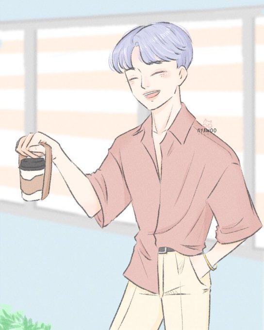 POV: After a difficult day at work, he waits for you outside your office with your favorite drink. "You did well today." #Nyawootober no.5: Drink #inktober2022 #inktober #digitalart