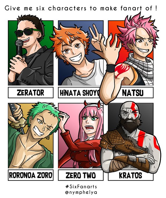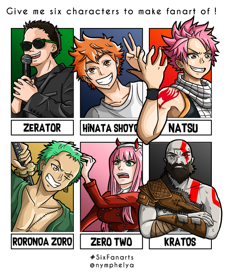 Hop ! Voilà ma participation au #SixFanartsChallenge ! 🔥 Avec un ptit fanart de @ZeratoR 😇 #SixFanarts #ArtistOnTwitter #artist #anime #manga #DarlinginthefranXX #Haikyuu #fairytale #ONEPIECE #Kratos