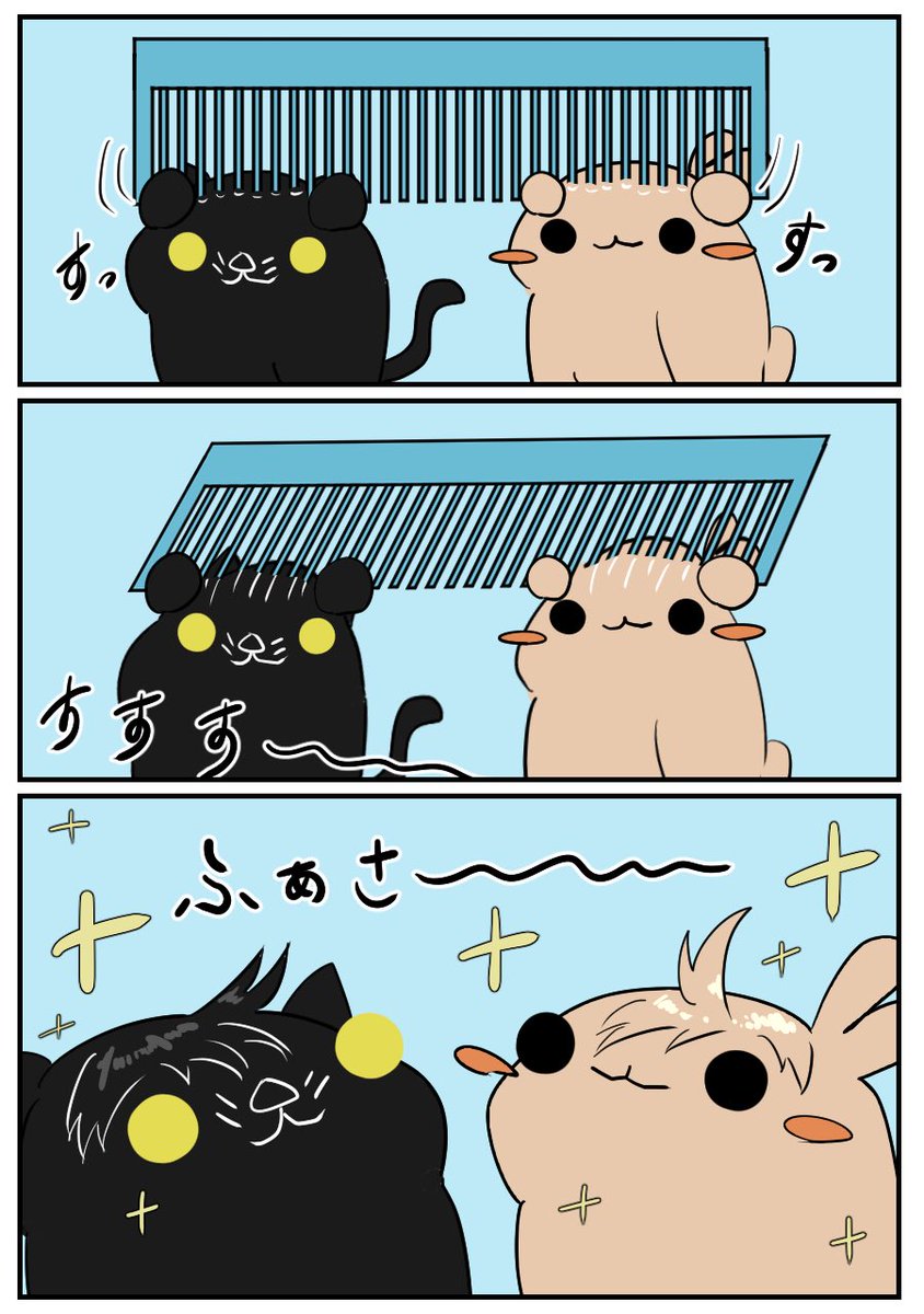 3コマ漫画。うさねこドライヤー。 #3コマ漫画 #漫画が読めるハッシュタグ