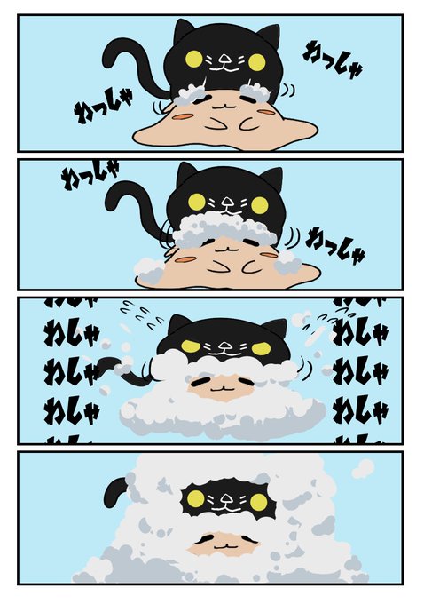 4コマ漫画。ねこシャンプー。 #4コマ漫画 #漫画が読めるハッシュタグ