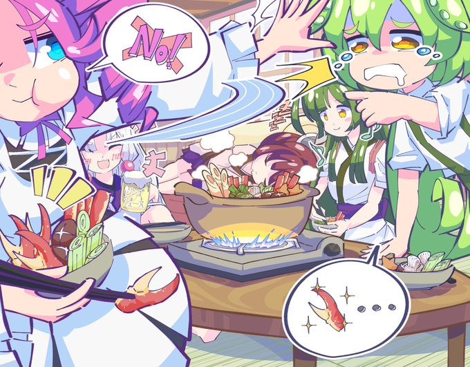 65 198 東北家でカニ鍋パーティ!!!(食い意地めたん+カニ爪欲しかったずんだもん+動じないずん姉様+寝るきりたん+ビールもどきで酔うイタコ姉様) #東北ずん子 #東北きりたん #東北イタコ #ずんだもん #四国めたん 23/03/23 22:05