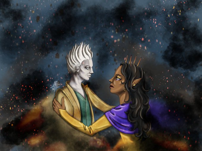 But I’ll be there for you, as the world falls down Yes, I’m still thinking about the Calamity finale and having feels about all of them. Today they feels go out to Laerryn and Loquatius #ExUCalamity #CriticalRole #criticalrolefanart #CriticalRoleArt