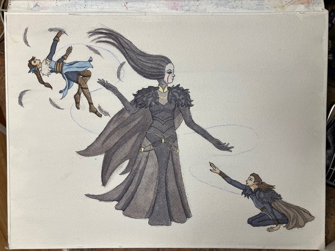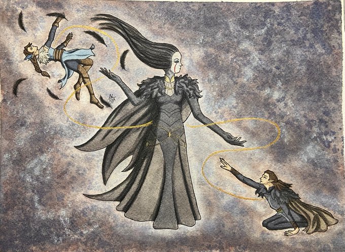 Everything changed, and a deal was struck… Vax’ildan’s relationship and deal with the Raven Queen was portrayed so beautifully in the show. Done in watercolor #TheLegendofVoxMachina #CriticalRole #criticalrolefanart #CriticalRoleArt