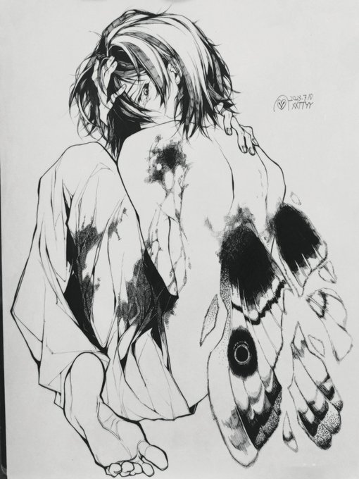 89 390 #BSD 抱歉这样可能有点看不出来他是费奥多尔 ()呜呜呜他肩膀被打穿头疼的样子我很喜欢所以画了 23/07/10 02:32