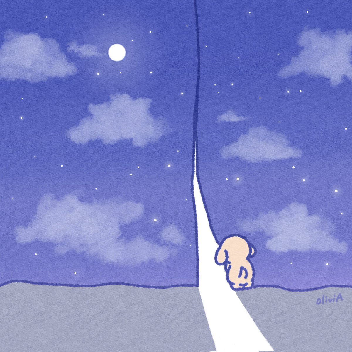 夜をあける #イラスト #ゆるイラスト #ゴールデンレトリバー #夜明け #GoldenRetriever #dog #Illustration