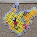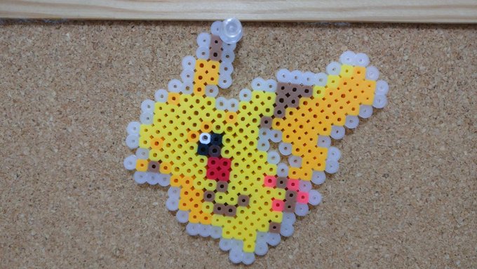 今日は長男とアイロンビーズする機会があったので、ピカチュウ作った。外周は黒にするつもりだったのだが、全然足りなさそうなので、半透明ので代用。 #アイロンビーズ #ドット絵