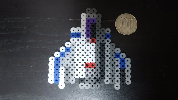 12 38 あまりに暇だったので、レイフォースの自機 X-RAY を #ナノビーズ で作った。なんかイマイチ… #ドット絵 22/02/11 17:25