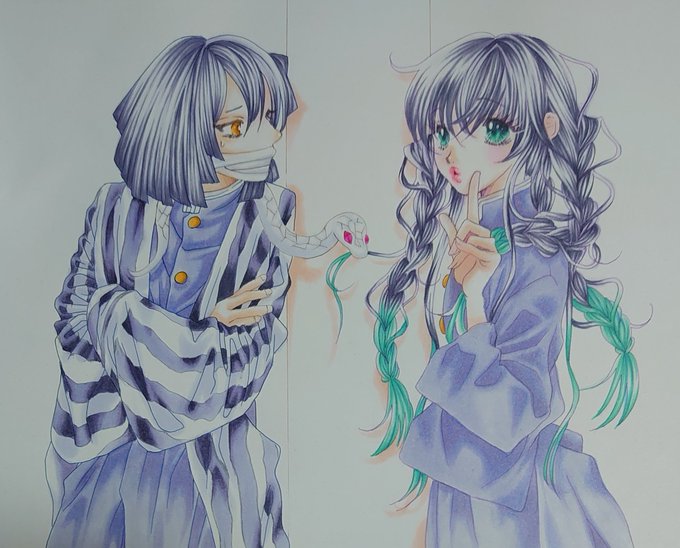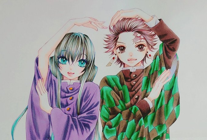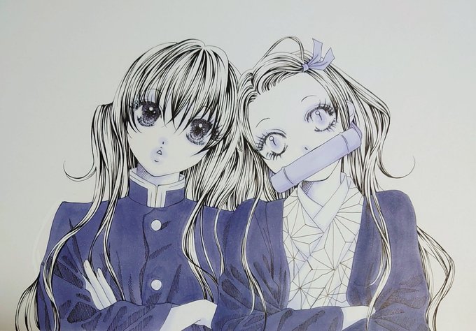 #竈門禰豆子生誕祭2021 #竈門禰豆子誕生祭2021 大遅刻だから、タグつけない方が良いのかな(^_^;) どうやら同い年だった2人🌫🐭 刀鍛冶の里で2人で首傾げてるの可愛かった(゚ν゚)