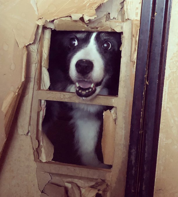 たくさん見てくれてありがとうございます 紹介したい事は何もないので犬の紹介を... ダチの犬です 散歩に行きたい時覗いてくるそうです 襖の穴はダチの妹が頭突きで開けたそうです