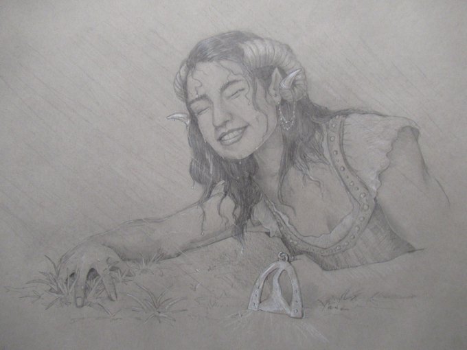 She posed for the drawing when she was much younger. A vanity? Perhaps. Self Indulgent? Definitely. But she liked the way the artist looked at her, and on the canvas time would stand still. Forever she would remain The Ruby of the Sea. #CriticalRoleArt #criticalrolefanart