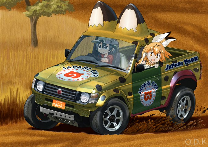 #けものフレンズ #イラスト ジャパリパジェロで旅するさばんなコンビ