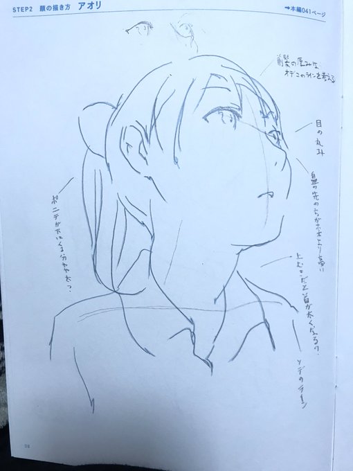 今日は横からのポニテ 教本のだと前髪スカスカで違和感あったので改変✍️ テールがもっさり、改変したせいでおでこ絶壁になったな.... #イラスト #アナログイラスト #絵描きさんと繋がりたい #イラスト好きな人と繋がりたい #イラスト練習中