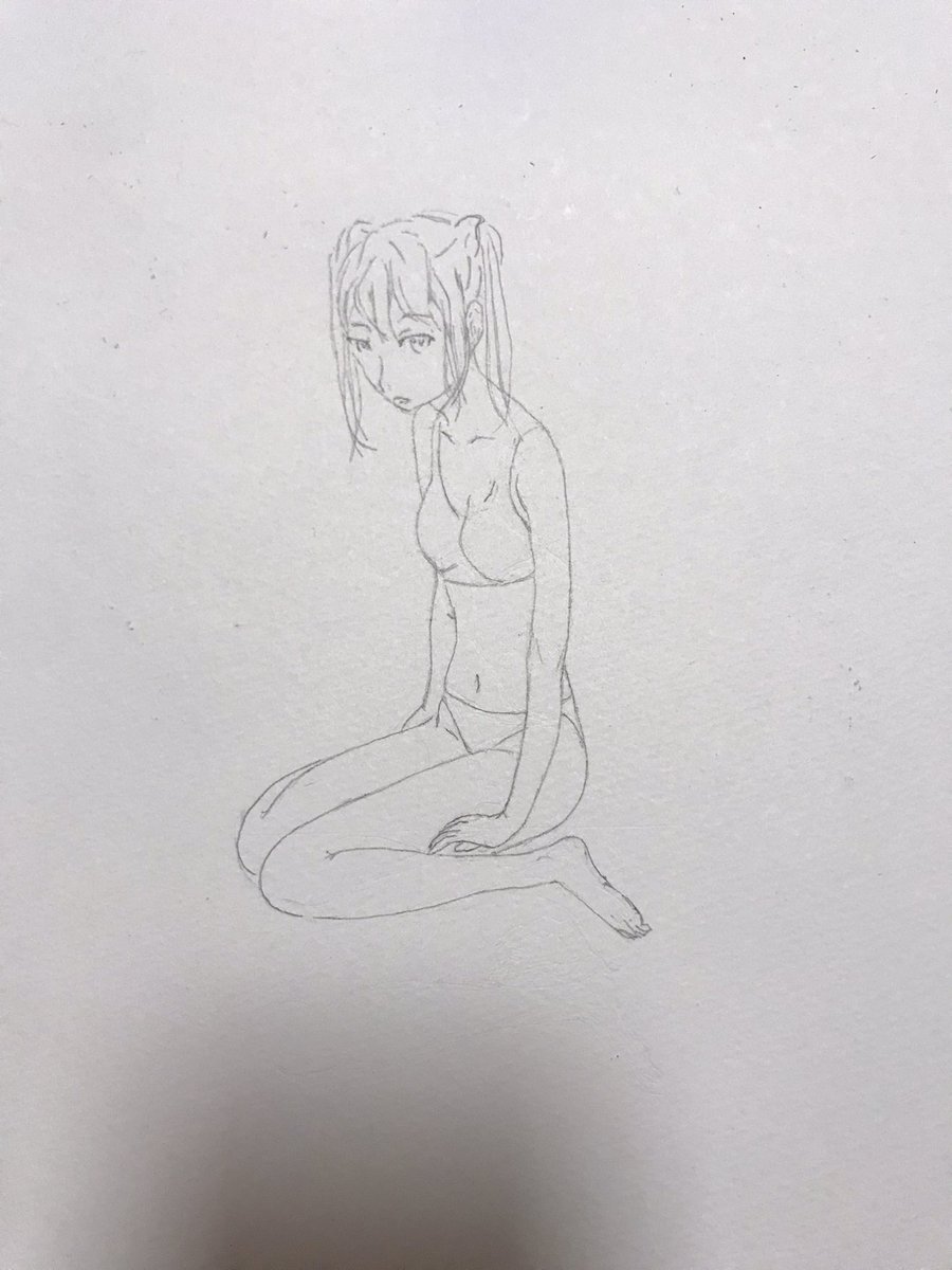 結局全部消して最初っからやり直しw でも昨日よりはよくできたと思う😆 消しちゃったけど中心線と等身の線は入れた方が絶対描きやすいと知れた🔥 #イラスト #絵描きさんと繋がりたい #イラスト好きさんと繋がりたい #アナログイラスト