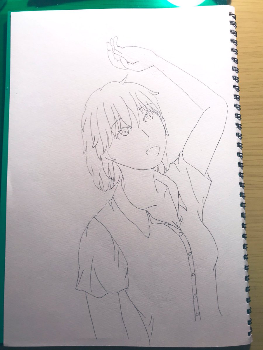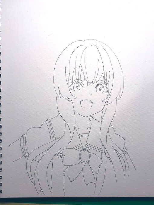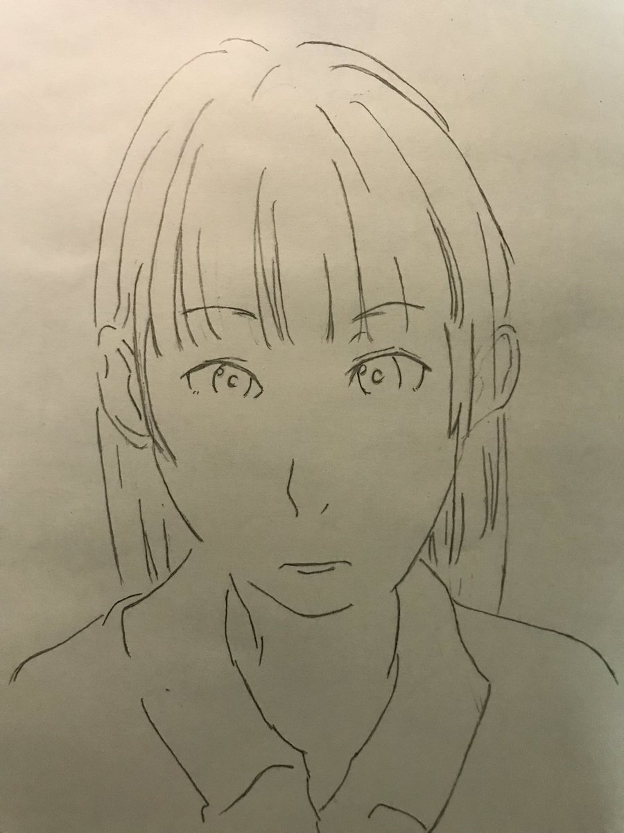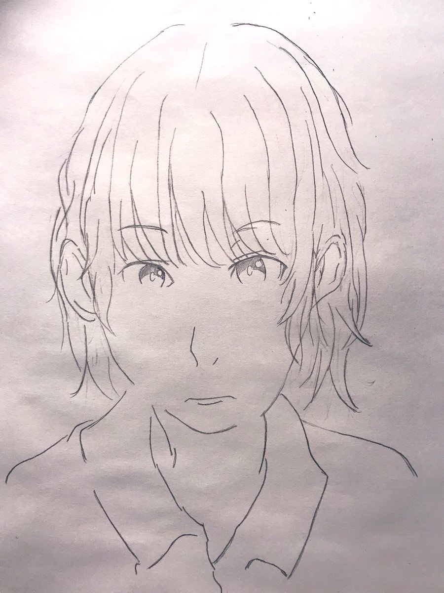 今日の分終わり 髪の練習来た! 手前のテールの根元はいい感じやけど前髪の位置高すぎなぁ… 教本にこだわり過ぎずに頭の丸みに合わせるべきか🤔 そもそも面長過ぎか笑 #イラスト #アナログイラスト #絵描きさんと繋がりたい #イラスト好きな人と繋がりたい