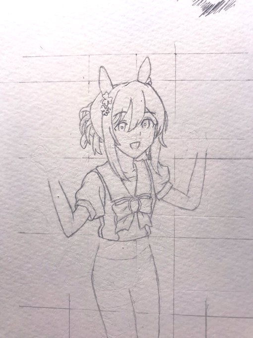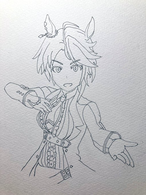 どうにか手描いたけど😨 左手はマシだけど右手消しすぎて紙が荒れて描きづらくなってきたからこれで妥協😵 ペン入れ怖すぎる... 適当に練習してからやってみよう! #アナログイラスト #ウマ娘 #ファインモーション #絵描きさんとつながりたい #イラスト好きな人と繋がりたい #模写