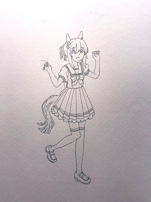 ファインモーションのペン入れ✍️ 所々ミスしてるし制服のライン細すぎんよ...😭 でもある程度形になって嬉しい! 近いうちに塗りもやってみようかな🤔 #アナログイラスト #絵描きさんと繋がりたい #イラスト好きな人と繋がりたい #模写 #ウマ娘 #ファインモーション #イラスト練習中