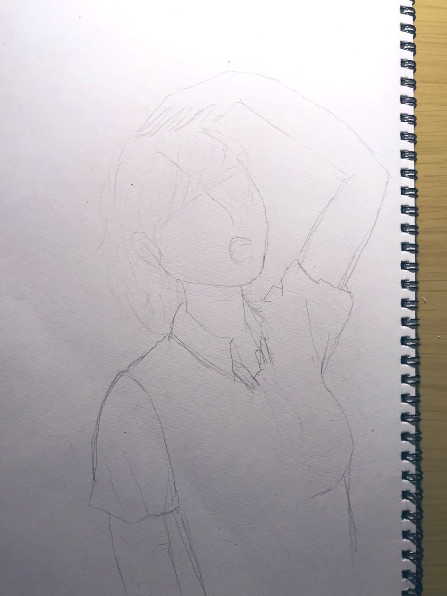 初オリジナルは自分で見た感じ 左腕のサイズ感 後頭部ぺったんこ 顔面パーツの位置と形と輪郭 髪の毛 が残念でちょっとツボる🤣 でも想像が少し形になったのは嬉しい😭 #イラスト練習中 #アナログイラスト #絵描きさんと繋がりたい #イラスト好きさんと繋がりたい #オリジナル #イラスト