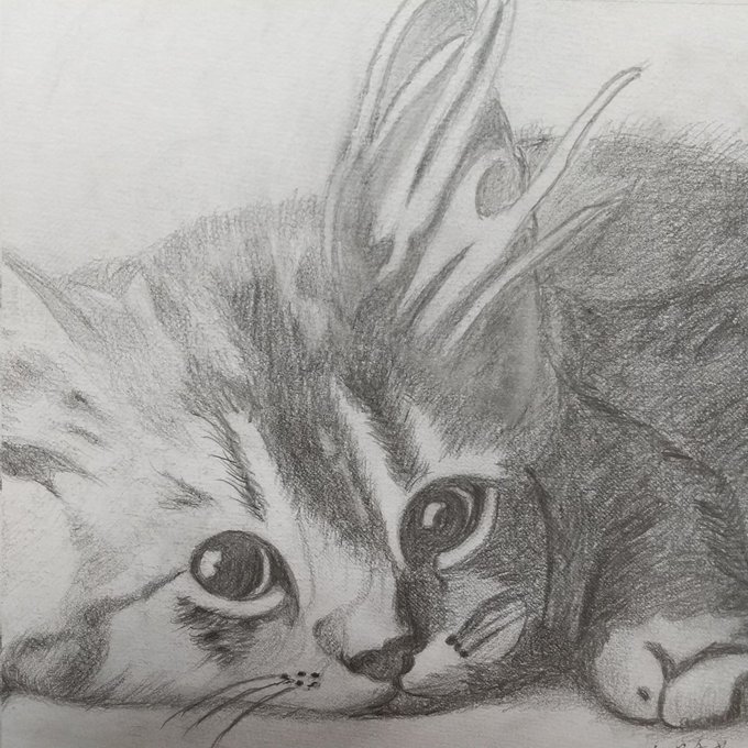 No.28 リベンジ👩🎨🖼️ 以前描かせて頂いた猫ちゃん達ですが、少し後悔が有りリベンジさせて頂きました🐈 ちょっとは上達した···はず😤 #イラスト #とらねこ #みんなで楽しむTwitter展覧会 #猫好きさんと繋がりたい
