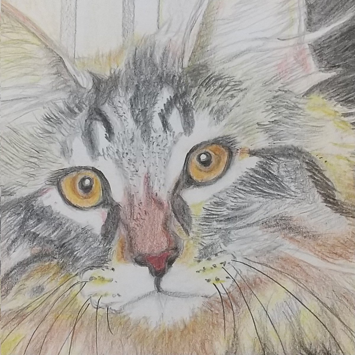 No.26 ちゅーるがあるのはあの棚の中だ! モフモフ猫ちゃんを色鉛筆で描かせて頂きました😼 #イラスト #メインクーン #みんなで楽しむTwitter展覧会 #猫好きさんと繋がりたい #イラスト練習中